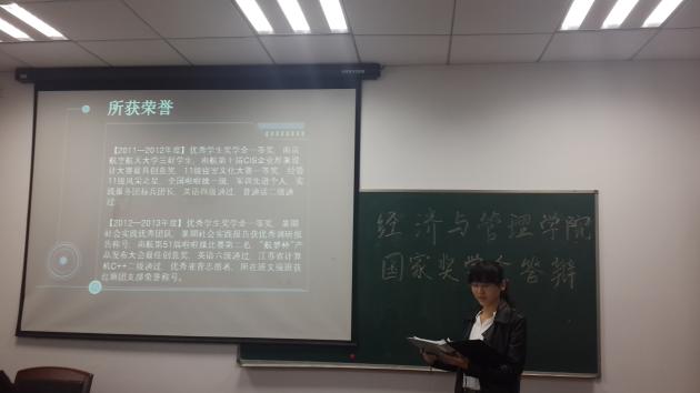 10月15日,2012——2013年度江南体育官网 本科生评优评奖公开答辩会在将军路校区经管楼举行,院党委副书记许静、各年级班主任代表、辅导员、学生代表作为评委参加此次答辩评审会。
