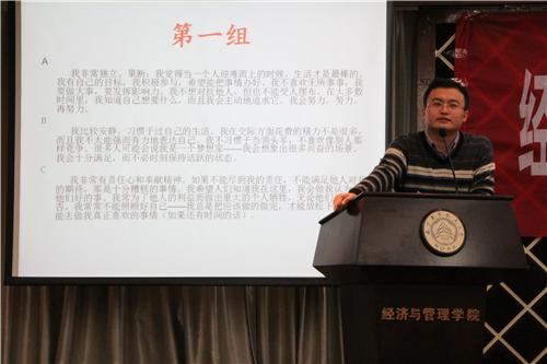 授课中,丁荣茂老师深入浅出的跟学员讲述了中国梦的内涵,南航几代人为实现高水平研究型大学梦想所作的奋斗,激励经管学子“仰望星空,脚踏实地”;裴宇晶老师激情慷慨的给学员们分析人的九种性格,教会学员明白自己个性、接纳自己的短处、活出自己的长处,懂得如何与不同的人交往沟通及融洽相处,与别人建立更和谐的关系;徐川老师则向学员介绍了从古至今的中国传统文化,幽默风趣的语言一次次赢得学员们的掌声;学校八大学生组织主席们则从团干实务的角度向学员传经送宝,分享自己奋斗历程与心路;江南体育官网 优秀研究生代表李佳兴和刘晓倜与大家分享了她们在援藏支教活动中的感受与体验,无论是西藏的教学教务工作,还是“三下乡”社会福利义工活动,她们的无私和热情让学员们在体悟温暖真情的同时更加深刻理解学生干部的责任与义务。
