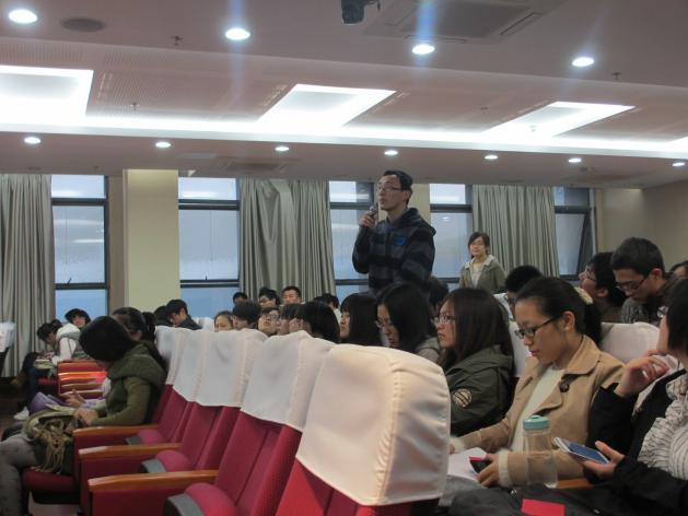 随后的自由讨论环节,主持人抛出三个问题分别由双方派出一个评论员回答,并与对方辩友展开激烈争论。评委老师也加入唇枪舌战,经济系陈圻老师表示社会发展要靠经济增长,同时道德水平也要提高,加大对教育的投入促进社会公平;工商系王子龙老师表示要加强制度建设,从管理顶层完善设计,解决司法不公、社会不公等一系列社会管理问题。老师们的精彩发言引来了阵阵掌声,台下观众也积极加入,提出如何规避商贩与城管暴力冲突等问题并积极参与讨论。