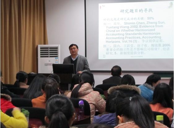 12月10日下午,教育部长江学者特聘教授、南京大学管理江南体育 副院长、江苏省审计学会副会长、中国实证会计研究会常务理事王跃堂教授,在江南体育 将军路校区江南体育官网 大楼704室为江南体育官网 师生作了题为“实证会计研究的若干问题”的学术报告。报告会由经管院“财务与会计研究所”主办,研究所所长耿成轩教授主持,刘益平教授等江南体育官网 相关学科专业的老师、研究生和本科生参加并聆听了学术报告。