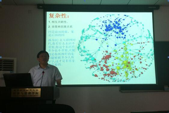 刘洪教授根据自己在人力资源管理的研究经历,结合复杂性管理的相关知识描述了当今经济环境,分别谈到复杂性、不可预测性与非中心控制这些现象;分析了国内与国外的经济趋势,并提出了经济转型环境下中国经济遇到的机遇与危机,对企业未来变革的类型从重构、再造与跨界这几个方面分别进行阐述。刘教授新颖的观点激发了与会师生极大的兴趣。