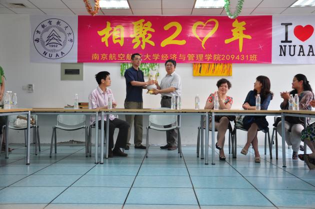 作为经济管理管理江南体育 市场营销专业第二届毕业生,同学们十分感激母校和经管院的培养和教诲,集资赠送了“基业永盛宝瓶”,作为本次聚会的共同纪念。同学们还集思广益,作了一首以“南、航、经、管”为首字的藏头诗献给母校和经管院的老师:南楼月下马飞腾,航帆远行丰功成。经纬两仪文化洽,管弦长奏伟业恒。南航,将是209431班同学们永远的精神家园!