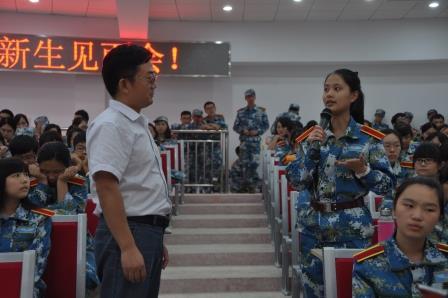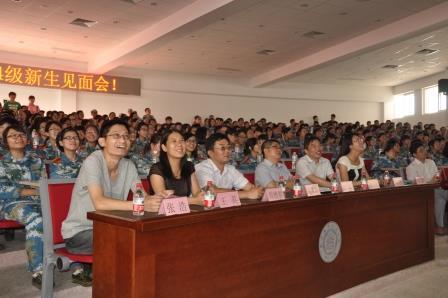 在将军路校区召开了2014级师生见面会,院长周德群、党委书记李遥、副院长张卓、副院长王英、党委副书记许静,各系专业教师代表,全体辅导员,2014级班级学导,以及全体2014级本科生研究生同学参加了见面会。