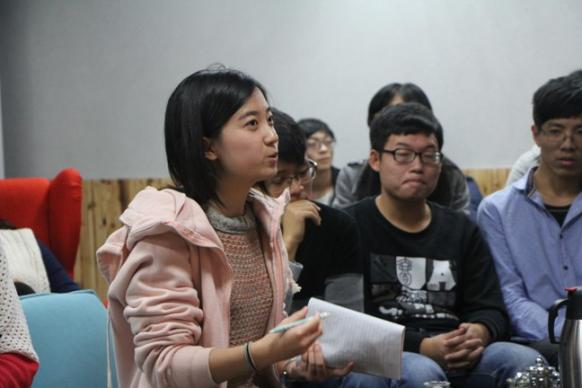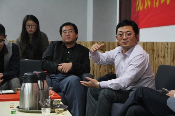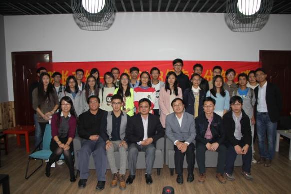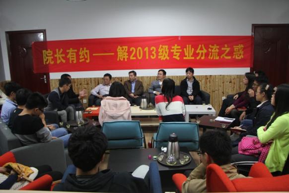 新聘教师与2013级辅导员佘明一同参加,与2013级学生代表畅谈专业分流问题。