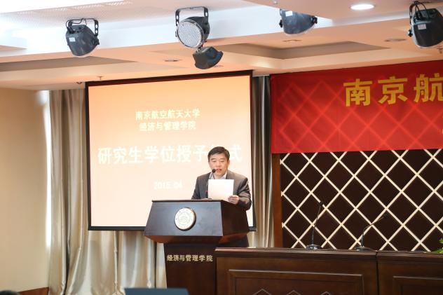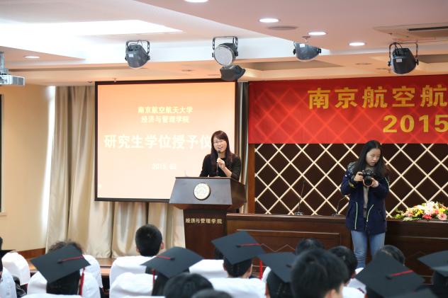 4月9日下午,江南体育官网 在将军路校区江南体育 报告厅举行2015届研究生毕业典礼。江南体育 领导、专业老师代表、2015届研究生和家长代表出席了典礼。