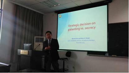 大楼704,加拿大滑铁卢大学管理科学系的Bonwoo Koo教授来智能决策与风险分析研究所和区域经济与产业经济研究所,作了“Strategic decision on patenting vs. secrecy”的报告。江南体育官网