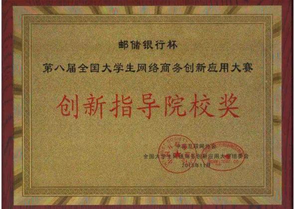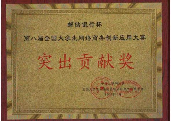 全国大学生网络商务创新应用大赛是在工信部、教育部的指导与支持下,由中国互联网协会主办的全国性大学生创新创业实践类赛事活动,是“互联网实训促就业工程”的重要推动形式。自2007年首届启动以来,每年组织一届。本届比赛经过紧张的初赛、复赛和分赛区决赛后,有来自全国十个大区共计200余所高校302余支队伍参加了全国总决赛。此次大赛很好的锻炼了学生的专业思维与创新创业的实践能力,加深了学生对电商及互联网平台的理解与应用。我校由于在比赛系统设计、参赛队伍组织等方面给与了长期支持,荣获了“突出贡献奖”和“创新指导院校奖”。