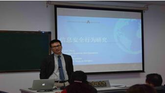 李珊、罗正军等老师以及其他学生包括部分国际留学生参加了此次讲座报告。 汪静国老师在复旦大学获得计算机科学学士,在纽约州立大学获得运筹学硕士以及管理科学和系统博士。目前他的研究领域包括信息安全、网络犯罪、决策支持和信息获取行为等。他在各类国际期刊上发表超过20篇的论文,其中包括MIS Quarterly,Information Systems Research,Decision Support Systems,European Journal of Operational Research等知名期刊。 汪静国老师在报告中首先介绍了信息系统中各类内部与外部的威胁风险,包括外部黑客攻击、以及内部人员违规信息泄露等,以及在美国政府和企业如何通过各种途径进行的有效防范。之后他结合近期在MIS Quarterly发表论文(Wang J, Gupta M, Rao R. “Insider Threats in a Financial Institution: Analysis of Attack-Proneness of Information Systems Applications” [J]. MIS Quarterly, 2015, 39:91-112.) 详细讲解了如何构建不同统计模型、针对银行业进行有效监控和分析内部人员的不安全行为的研究。报告结束后,在场师生和汪老师进行了深入交流,现场氛围十分活跃。他的精彩报告给参会的老师和同学带来了许多启迪与思考。最后,汪博士的精彩讲座在同学们热烈的掌声中圆满结束。