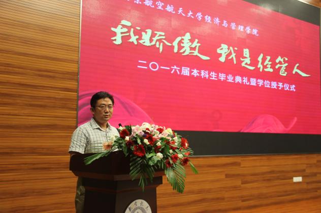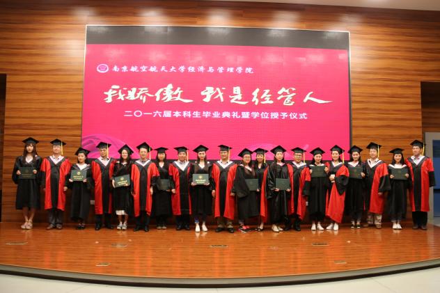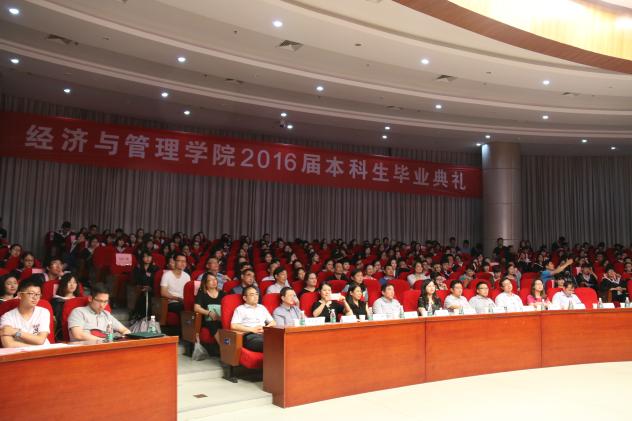 6月20日晚,“我骄傲,我是经管人”江南体育官网 2016届本科生毕业典礼暨学位授予仪式在将军路校区一号楼报告厅举行。江南体育官网 党委书记焦宏图,院长周德群,教务处副处长朱建军,江南体育 副院长张卓、王英、周鹏,党委副书记许静,管理科学与工程系主任马静,工商管理系主任王子龙,经济系主任邓晶,教师代表、院友代表、家长代表和全体毕业生出席了典礼。