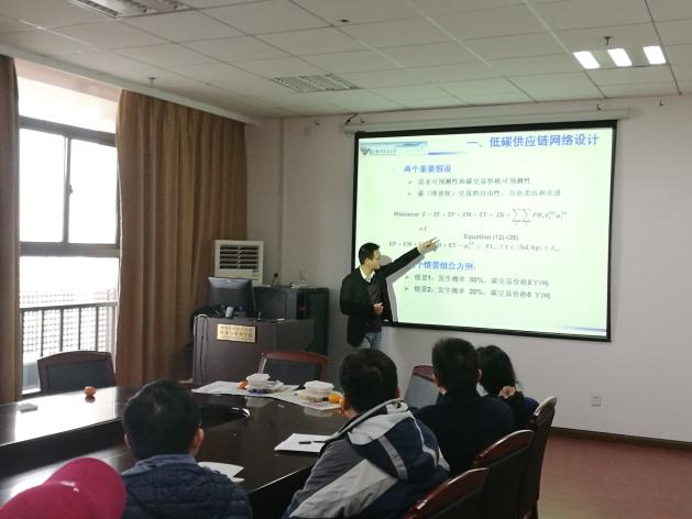 汇报结束后,在座老师就学术报告中的不确定环境下的低碳供应链建模、面向产品服务的供应链设计等问题与徐志涛老师进行了交流和讨论,并为其今后的研究工作提出了建议和可能的突破点。