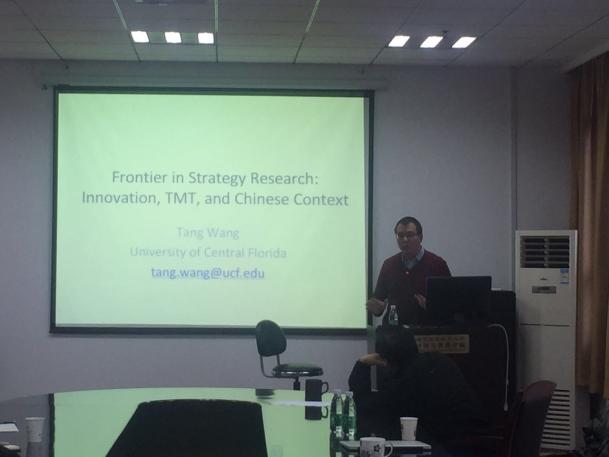 师生做了一场主题为《Frontier in Strategy Research: Innovation, TMT, and Chinese Context》的学术报告。