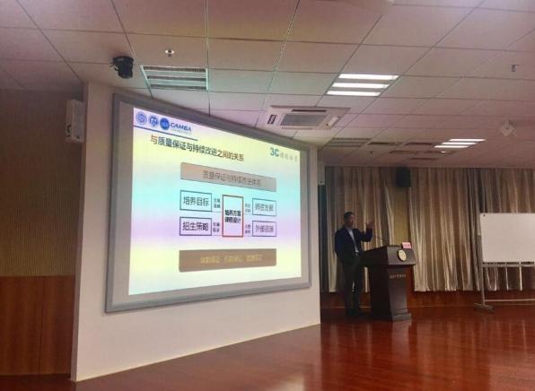 的路应该如何走”“应该参与哪些认证”“如何对待认证与发展的关系”几个核心问题,根据多年认证的经验,苏部长认为“课程体系的建设仍然是保证质量与特色的核心内容”,认为 “国内认证使命导向与其他国际认证一致”。之后苏部长又向老师们阐述了大连理工3C课程体系,即:Case、Consultation、Creation,分为先修课程、进阶课程及实践课程三大类课程,在体制保证、机制保证和资源保证的前提下,3C体系构建了梯度提升、全员参与、团队合作的原则,能够很好的处理质量保证与持续改进之间的关系,其实施内容能够帮助学员拓展创新创业能力、批判性思维能力、发现及解决问题的能力、基础与前沿视野,苏部长特别强调“全员参与与团队合作”的重要性。