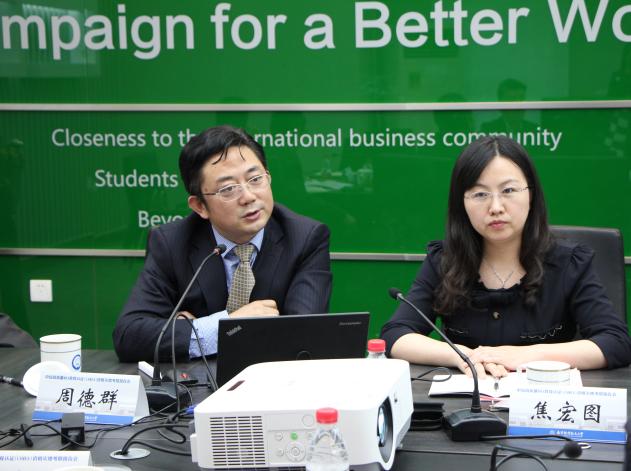 接着,周鹏副院长从MBA项目概况、质量管理体系和课程体系设计三个方面展开了汇报。认证专家吴晓波教授就汇报的内容提出问题,进一步了解MBA项目的运行和管理。
