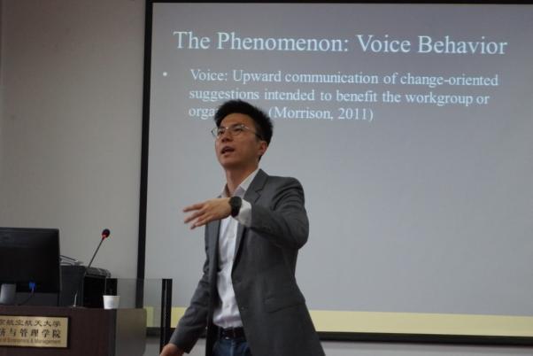 706教室做了题为“‘Say It as It Is’ or ‘Beat Around the Bush’? Consequences of Voice Directness, Voice Politeness, and Credibility on Managerial Endorsement”的精彩学术报告。报告由人力资源管理研究所张龙老师主持,陈万明、张捷、胡恩华、李敏、李媛等老师和研究生参加了这次学术讲座。