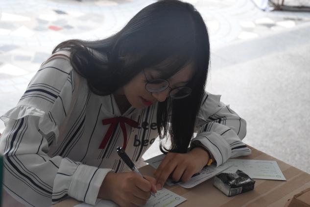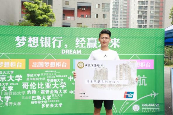 为报到的新生开设了“梦想银行”,新生可以在此领取“经营梦想银行卡”,写下自己对未来的期许,将它们存放在“银行保险柜”。梦想银行将会伴随2017级新生大学四年,四年后,学生凭借自己的梦想“银行卡”来查看自己的梦想是否实现。希望用梦想银行卡不断激励学生们不要忘记自己最初的梦想,努力向着梦想前进。”