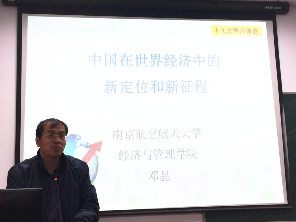 副院长邓晶老师为17级博士生做了主题为“中国在世界经济中的新定位和新征程”的精彩讲座。