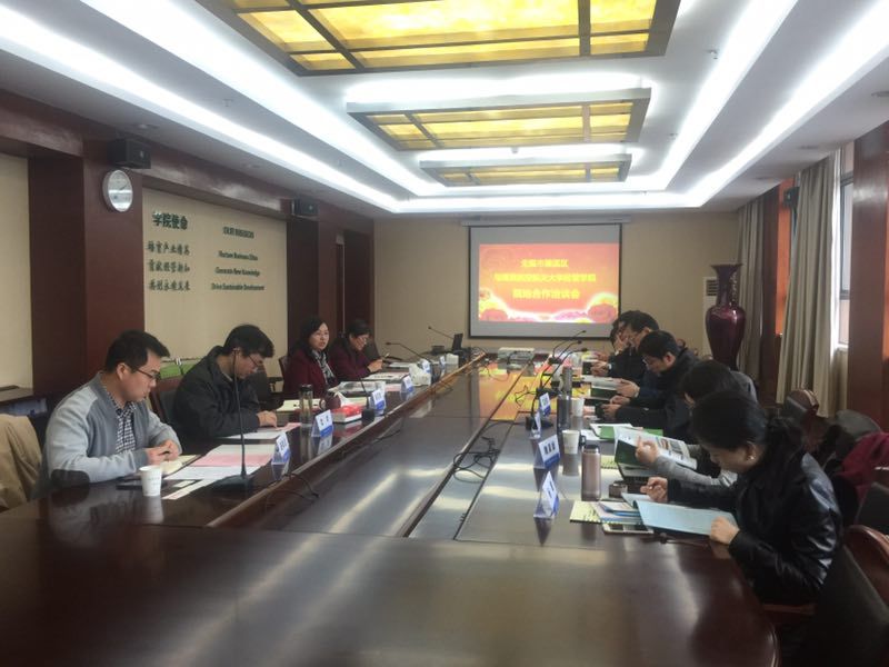 进行产学研合作洽谈。校组织部王宁,江南体育