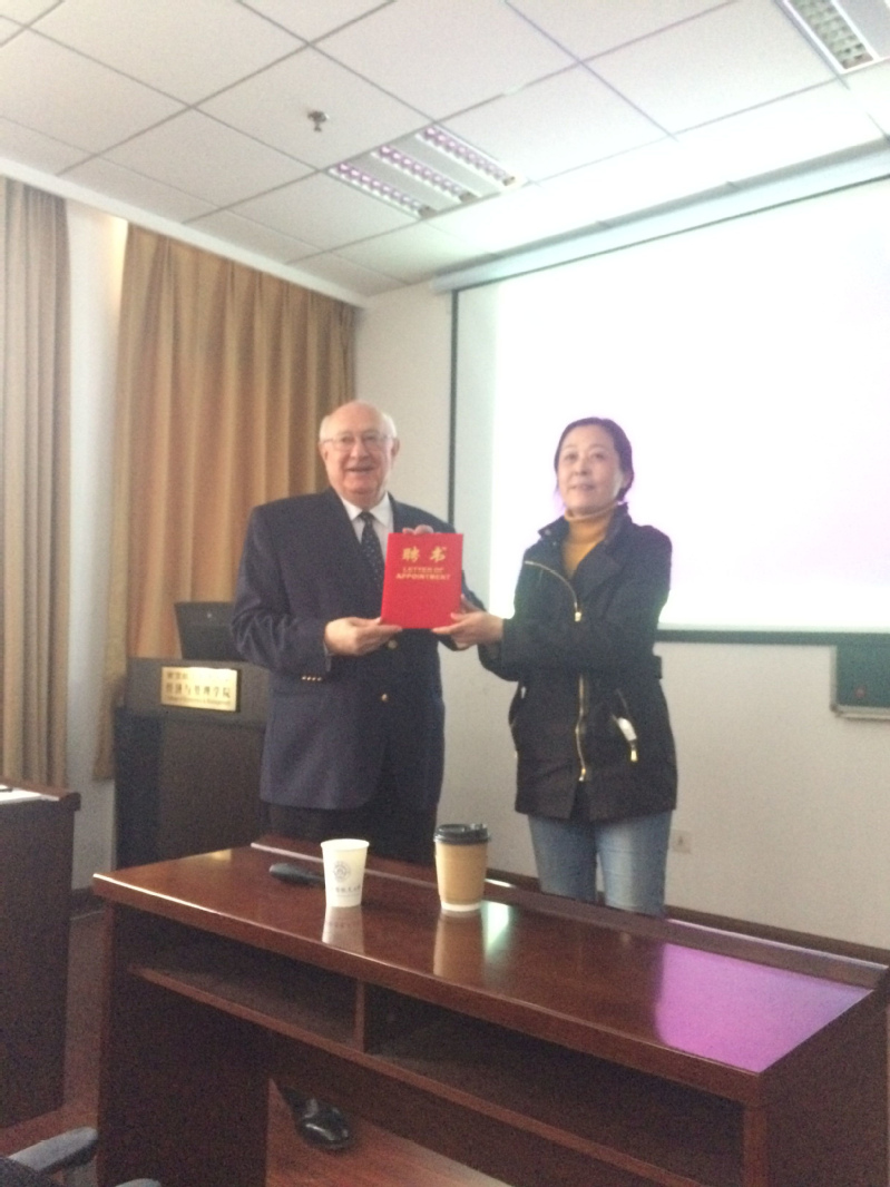 Benjamin Lev教授首先对自己的学术背景以及OMEGA期刊的基本情况、影响因子、论文数量和审稿过程进行了介绍。随后,Benjamin Lev教授从学术论文的题目、摘要、关键词、算例、结论、参考文献等几方面详细介绍了学术论文撰写及投稿过程中的注意事项。最后,徐海燕教授代表江南体育官网 为Benjamin Lev教授颁发了兼职教授聘书。此次学术交流活动为广大师生带来了启发,受到在场师生的热烈欢迎,也扩宽了江南体育官网 师生的国际化视野。