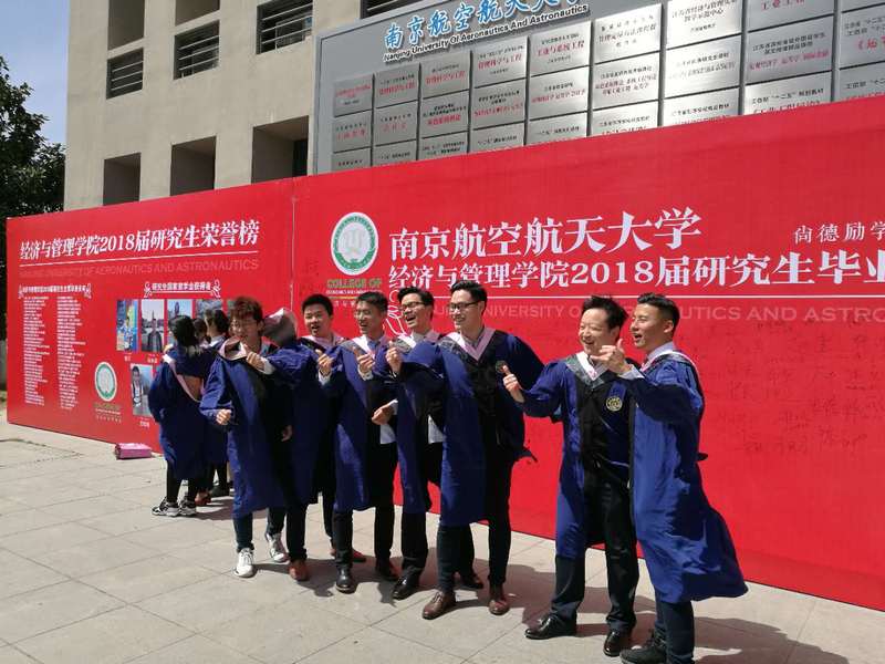 楼前广场,身着硕士服,头戴学士帽,2018届研究生拍摄了毕业合影。在快门按动的一瞬间,定格的既有同学们对于南航的不舍与留恋,也有他们对于未来美好生活的憧憬与向往,更有他们最美的青春容颜。