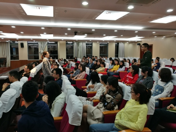 首先,袁颖老师向同学们介绍了目前的社会就业形势以及江南体育官网 2018届研究生就业的具体情况。尽管当前受社会政治经济等方面的多重影响,高校毕业生就业竞争激烈,但在学校和同学们自身的努力下,截至2018年4月,江南体育官网 2018届研究生就业率达到了90%,国防就业、世界500强和升学率都有所提升。