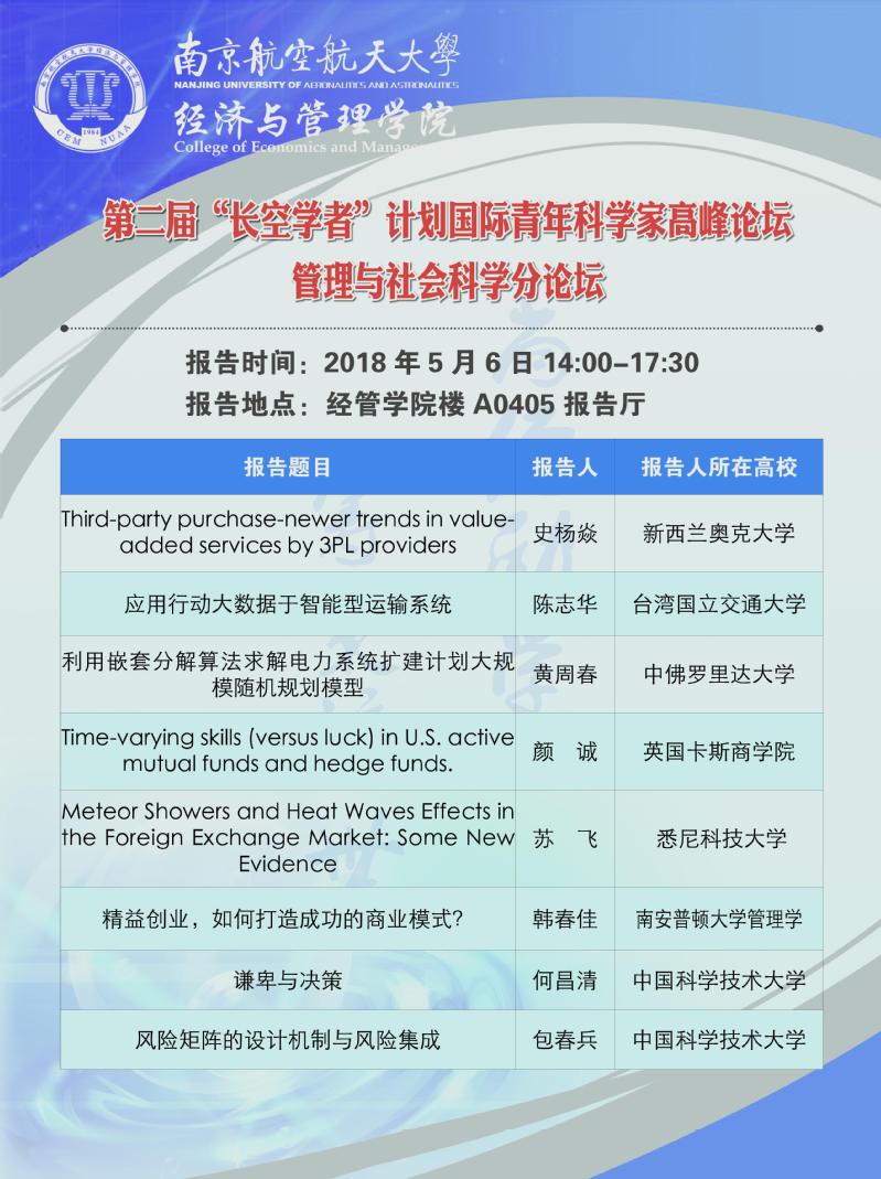 报告人简介:Yangyan SHI, 澳大利亚麦考瑞大学管理江南体育 高级讲师/副教授,博士生导师。研究领域为运营管理、物流管理、供应链管理等。目前已在SSCI、SCI,ABDC,ABS期刊发表多篇学术论文,例如:International Journal of Production Economics, International Journal of Operations and Production Management, Supply Chain Management: An International Journal, Applied Economics, Production, Planning and Control, Supply Chain Management Review, International Journal of Logistics Systems and Management, APICS Magazine等。国际期刊IJAL副主编,英国皇家物流与运输协会注册会员,美国供应链管理专业委员会会员,国家教育部和科技部举办的第十届“春晖杯”优胜奖获得者。