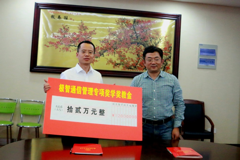 周德群与关占营代表院企双方签署了《校企战略合作协议》,根据协议,双方将围绕学生实践培养、科研成果转化、技术交流、学生就业等方面开展长期、深入的合作,积极探索产学研融合战略合作模式。此外,双方签署了《极智通信管理专项奖学奖教金捐赠协议》,极智科技将向江南体育官网