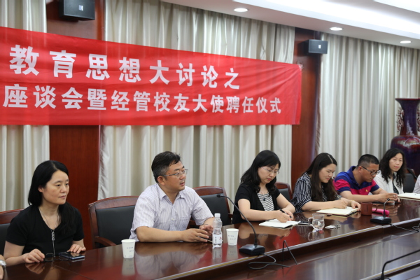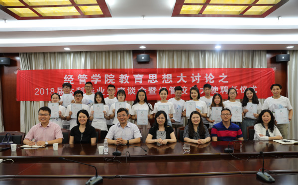 6月13日下午,江南体育官网 教育思想大讨论之2018届本科毕业生座谈会暨经管校友大使聘任仪式在经管楼604会议室举行。江南体育官网 院长周德群、党委书记焦宏图、党委副书记涂志宏以及各系负责老师与毕业生代表们参加了此次活动。