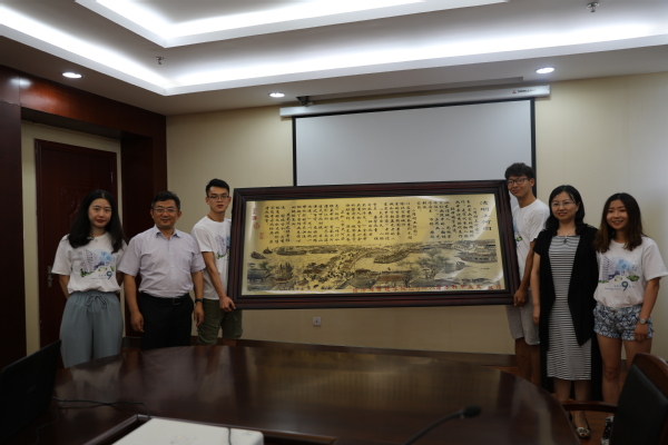 献上主题为“清明上河图”的铜板画,寓意为江南体育