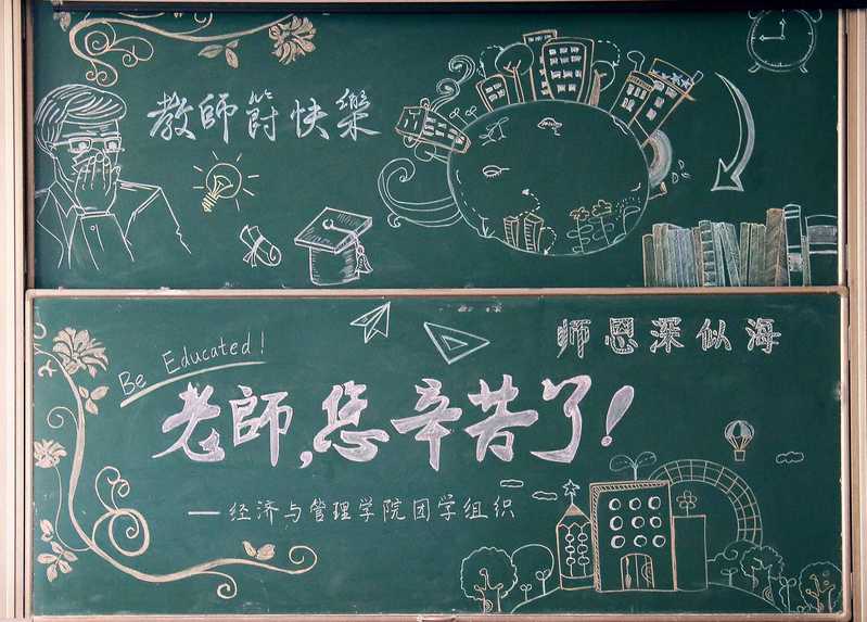 为了让老师们感受到同学们的用心与情谊,团学骨干们群策群力,最终选择黑板报这一传统形式表达节日祝福。江南体育 的团学骨干们提前搜集到江南体育 老师的课程表,利用周末时间带领有绘画才能的同学们来到教室,为老师们设计了精美的黑板报。黑板报是由老师每日上课时都会使用的粉笔绘制而成的,同学们独立设计、亲手绘制,只为教师节当天老师们能从这些板报中感受到同学们对老师的心意。老师们看到黑板报时,幸福的笑容是对同学们的认可,也表达了对同学们的感谢。