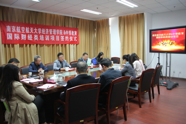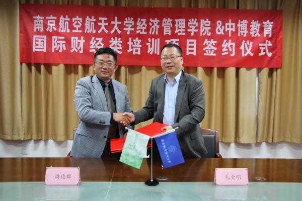 仪式上,周德群院长向与会嘉宾介绍了江南体育官网 的发展、专业设置、人才培养情况等,他提到:多年来,江南体育 一直秉承学科建设和在职培训“两手都要抓”“两手都要硬”的原则,非常重视学生的学术能力和实践能力的培养,也通过在职培训紧跟社会发展及需求,不断提高江南体育 师资队伍和教师教学水平。这次与中博教育的合作,可以使双方更加深入地进行资源共享,共同开发课程、案例,共同提高在业界的口碑和经验。中博教育董事长毛金明回顾了创业十余年的历程,他非常认同南航学生“实干、创新、合作”的精神,也认为南航江南体育官网 的办学理念,与中博教育非常吻合,希望签约后,能够通过中博项目为南航学子提供职前培训和向大企业推荐的机会。毛金明董事长表示中博教育将以本次国际财经类项目合作为契机,本着以为学员服务的原则,与院方共同培养更多国际财经类人才。