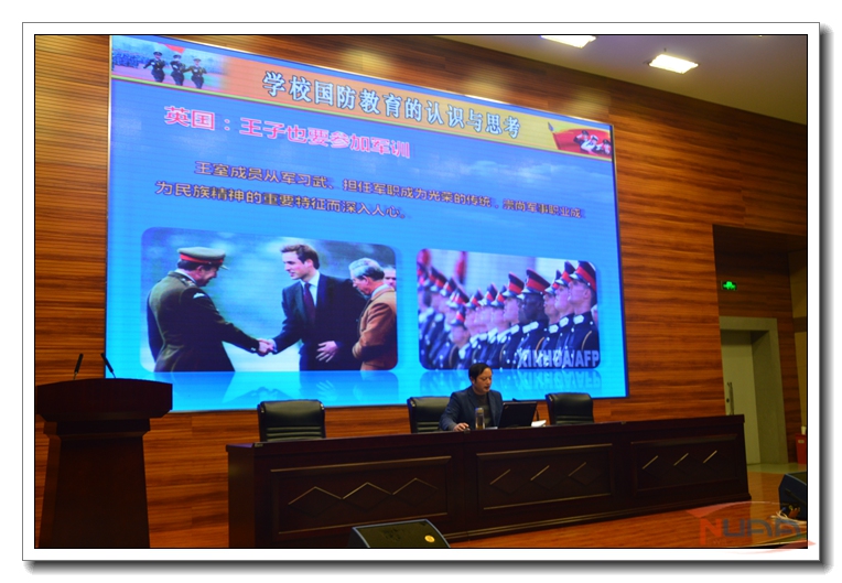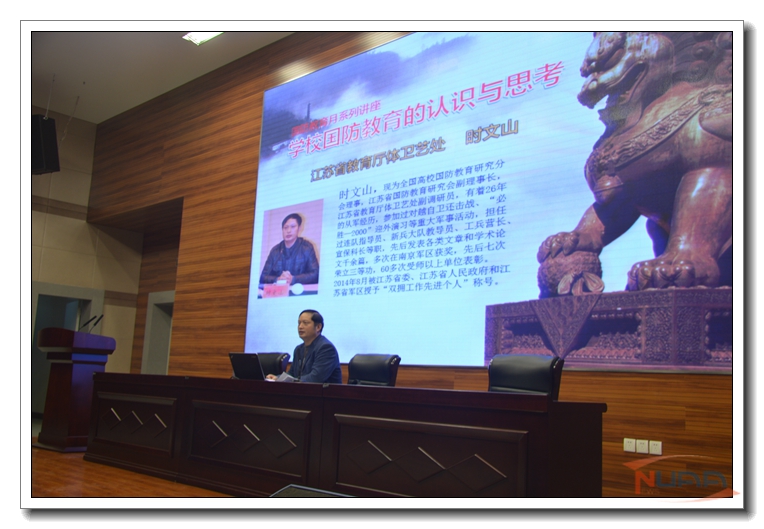 为深入开展“国防文化推广月”系列活动,11月13日晚,我校人武部、学生处邀请省教育厅体卫艺处副调研员时文山在将军路校区一号楼四楼报告厅作了题为《学校国防教育的认识与思考》的专题讲座。江南体育 人武部副部长李辉主持讲座,国防生、国防协会及部分在校学生听取了讲座。