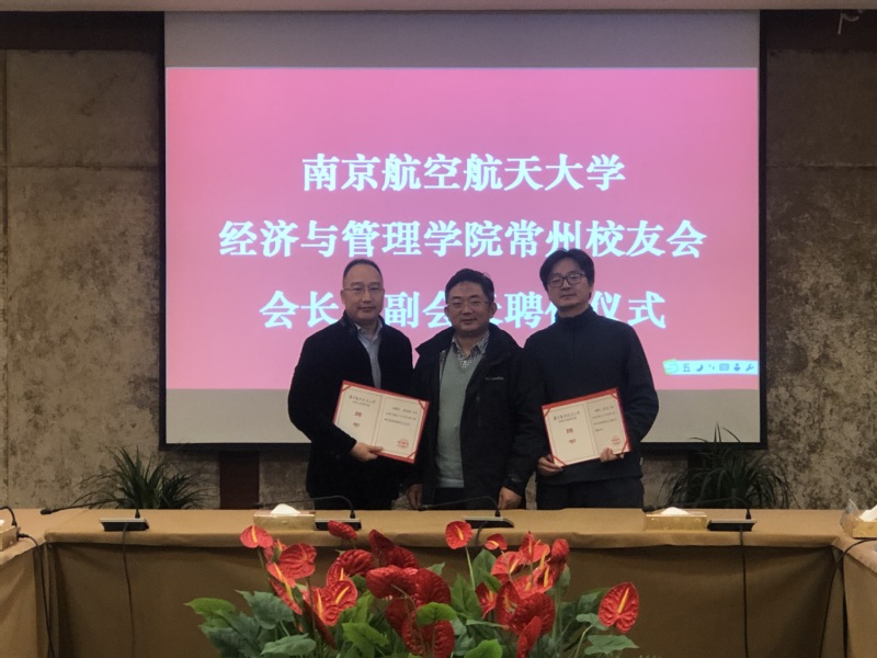 常州校友会会长、副会长兼秘书长聘书。曹章保、胡学雷表示将在校友工作中不断加强与江南体育