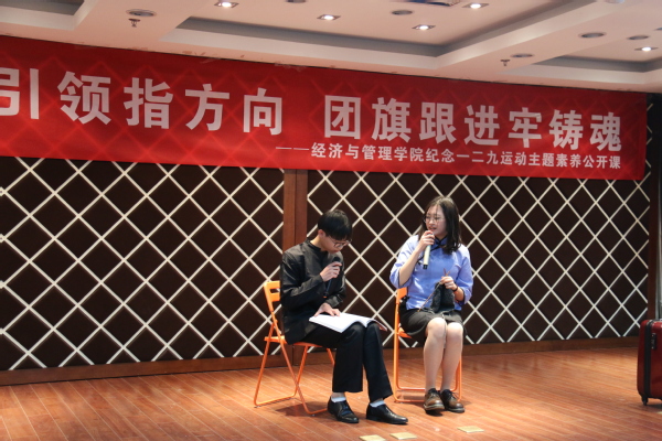 江南体育官网 始终坚持重视大学生理想信念教育,本次公开课是经管团学响应上级团组织开展信仰公开课的号召,表达了经管青年对“一二·九”运动精神的纪念与敬意,继承和发扬了先驱们伟大的爱国主义精神。参加此次活动的2018级新生管宁表达到“作为学生骨干,很荣幸能够参加此次活动,让我们能够进一步了解历史,激发出自己内心深处对国家、对民族的责任感,我们将在具体实践中将信仰落实为行动自觉,化知识为德性、化德性为德行,做到心中有阳光、脚下有力量”。