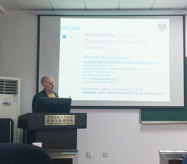 2018年11月13日上午,格拉纳达大学计算机科学和人工智能专业的教授Enrique Herrera-Viedma受江南体育官网 智能决策与风险分析研究所邀请,江南体育官网 做了题为Bibliometric Tools for Discovering Information in Science的讲座。江南体育官网 朱建军教授、章玲教授、关叶青副教授、河沙玮讲师等老师以及部分硕博研究生参与了活动。
