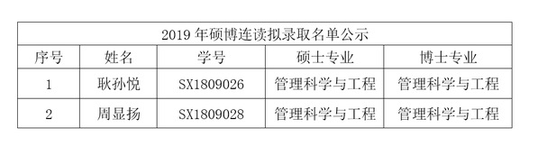 经过江南体育 考核小组对申请学生的课程和科研能力考核,拟录取以下2位同学硕博连读,特此公示。