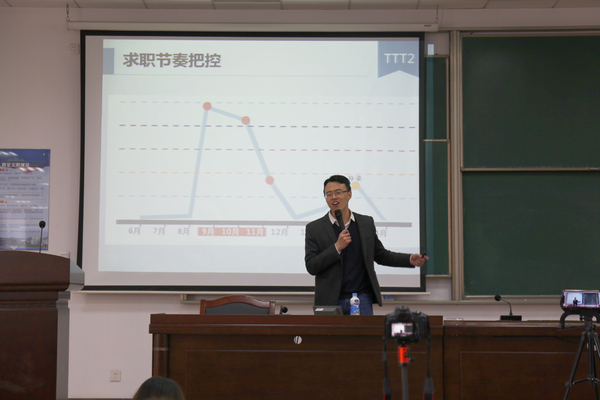 康冲老师以知名电影人物的职业经历为开场,使同学们对目前社会就业形势有所了解,并分享了自己丰富的职业生涯经历和经验,以此引出今天的主题。随后康冲老师从行业选择和职业定位为大家进行指导,帮助同学们更好的地明晰定位、做好选择,并从校招参与、简历撰写、面试技巧等方面为同学们提供了具体建议。