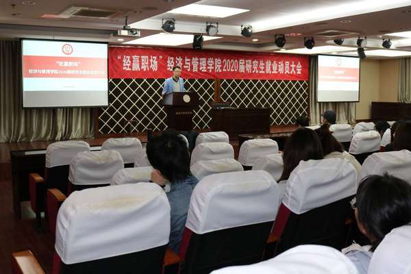 在A0305报告厅举办2020届研究生就业动员大会。会议由研究生辅导员康冲主持,参会者包括2019届研究生代表和全体2020届研究生。