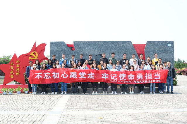 4月27日,江南体育官网 开展“不忘初心跟党走,牢记使命勇担当”主题二级党校培训课程暨青马工程团日活动,70余名党员发展对象、青马工程培训班学员前往南航天目湖校区、新四军江南指挥部纪念馆参观学习,了解学校发展、追忆革命先烈,辅导员康冲、朱一豪一同参加了本次活动。