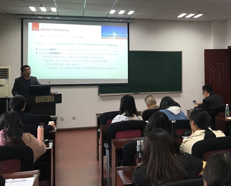 2019年3月26日下午,中国商飞上海飞机设计研究院飞机架构集成技术所高级工程师马麟龙先生应江南体育官网 邀请,在经管院704室做了题为“现代商用飞机特性工程”的精彩讲座。