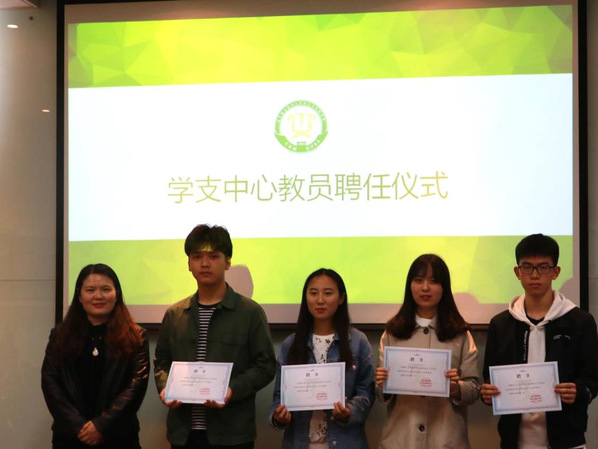 邓晶从供需匹配的角度出发,希望学支中心能深入同学当中做好调研,掌握同学们学习现状,结合学生需求,利用学支中心搭建跨年级的学风建设平台,搭建教师、学生之间的桥梁,形成跨年级的学风建设平台。涂志宏向学生教员代表颁发聘书,勉励他们不断努力,继续前行,并提出应充分发挥学生骨干的传、帮、带作用,做好江南体育 学支中心的日常管理工作,将阶段性考核与过程化辅导相结合,协调各方资源、完善激励政策,进一步搭建各项帮扶、辅导平台。