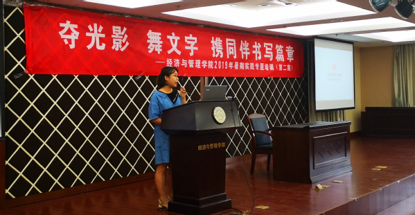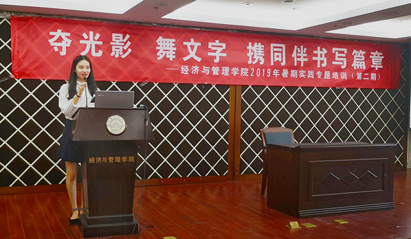 6月12号下午,"夺光影 舞文字 携同伴书写篇章"江南体育官网 第二期暑期社会实践专题培训在经管楼A0305报告厅顺利举办。江南体育 宣传员时云、2016级辅导员朱一豪、院新媒体中心邵丹惠分别就摄影摄像、团队运营和新闻撰写开展了专题培训,江南体育 团委书记庞依达和近两百余名社会实践项目负责人参加此次培训。