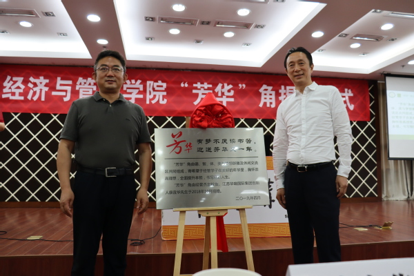 首先,康宜华和周德群共同为寓意 “鼓励学生胸怀崇高理想,珍惜当下芳华,书写精彩人生”的“芳华”角进行揭牌。他代表江南体育 向以康总为代表的一批关心江南体育 发展的校友们表示了衷心感谢以及热烈欢迎,他表示,同学们要秉承“尚德励学,筹策济世”的责任担当,汲取讲座中蕴含的人生智慧,立志成为像康总一样优秀的南航经管人。