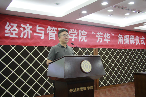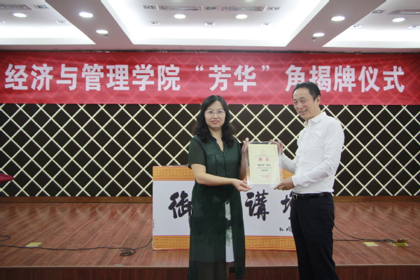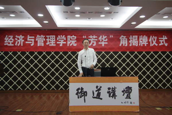 9月28日,江南体育官网 “芳华”角揭牌仪式暨第80期御道讲坛于江南体育官网 A0305报告厅教室顺利举办。我校杰出校友、江苏华瑞国际集团董事长康宜华先生应邀来校做了题为《从大数据看中国经济发展的机遇与挑战》的讲座,院长周德群、院党委书记焦宏图参加了本次活动,活动由院党委副书记涂志宏主持。