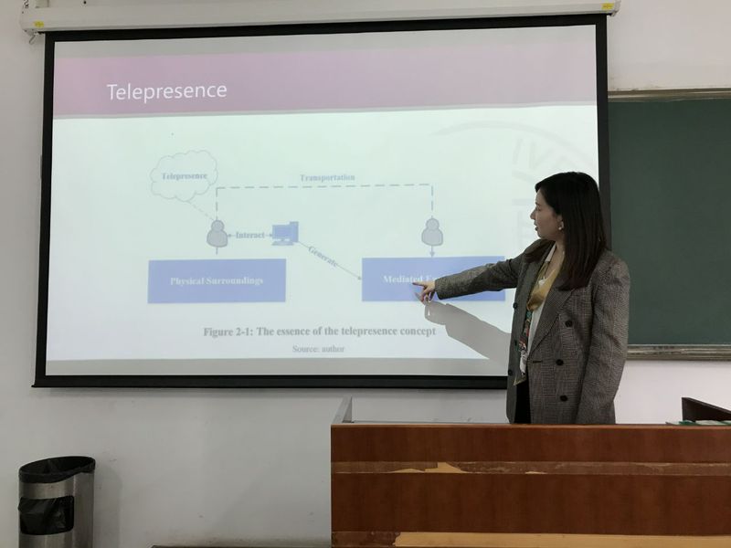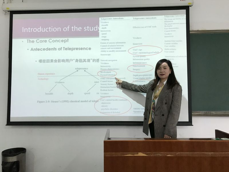 10月14日上午,南开大学商江南体育 信息资源管理系讲师张丹老师应江南体育官网 信息管理与电子商务研究所邀请,在江南体育官网 704会议室作了题为“虚拟环境中用户‘身临其境’感觉的探索性研究”的精彩学术报告。报告由讲师肖琳主持,副教授宋连莲、讲师刘文龙等老师及部分硕士、博士研究生参加了本次学术讲座。