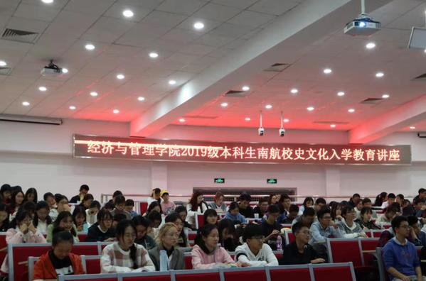 10月30日,校关工委常务副主任丁荣茂在将军路校区2111教室为江南体育官网 2019级新生开展南航校史文化入学教育,江南体育 全体大一新生参加。