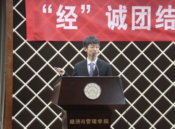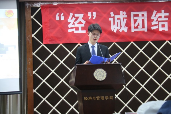 学生会主席王康宇回顾了过去一年里,经管团学组织如何将自身能力发挥到最大化,在江南体育 的大小活动现场展现经管青年为同学服务的赤诚之心,用实际行动,彰显经管学子奋发向上、努力拼搏的品质。同时代表第30届团学组织全体成员树立了更高的目标。