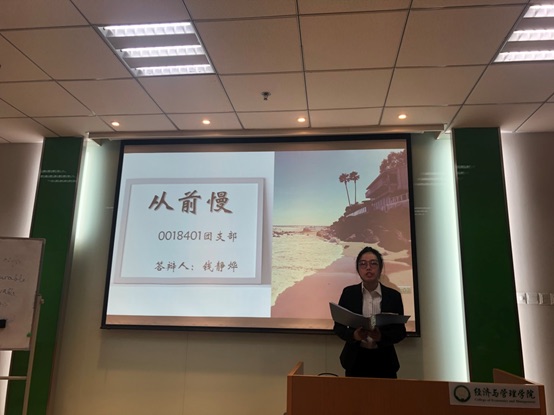 活动开始,团支书依次上台,从活动主题、中期推进、反思不足等方面进行汇报,分享在“一支部一项目”活动开展过程中的感受和收获,并对以后项目的推进做出规划与展望。0018401班团支书钱静烨以“从前慢”支部项目切入,从“见字如面”“单车游行”“无手机日”“捕捉最美南航”四个部分做了详细的介绍,鼓励同学们放慢节奏、体验生活,感受身边的美好。
