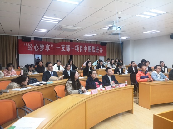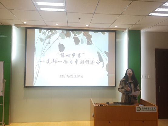 11月21日,“经心梦享”一支部一项目中期推进会在经管院楼辅楼A0302教室成功举办。院团委书记刘小杨,辅导员许乃元,校十佳团支部团支书陈冉以及江南体育 团支书代表共同参与了本次推进会。