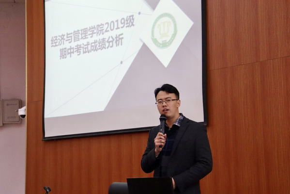 接着,康冲从成绩分布、高分比例、横纵向比较等多个角度入手,具体分析了管理科学与工程类、工商管理类、经济与贸易类各班的期中考试成绩,帮助学生合理定位当前学习状况,并就同学们入学以来在学习方式、习惯养成上的问题,提供了一些有针对性的建议。最后,他结合江南体育 学业与发展支持中心的工作发布了江南体育 下一阶段在学困生帮扶、集中晚自习设立等一系列的工作安排。