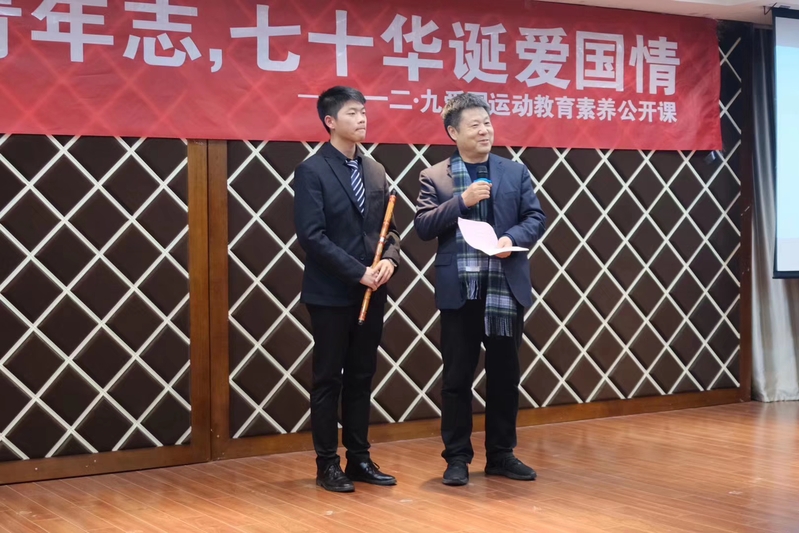 公开课伊始,董羽为在场学生讲述了一堂生动的微团课,围绕“是什么”“为什么”“怎么做”这三个问题,回顾了一二九运动发生的背景和历史意义,他引用习总书记对新时代中国青年提出的“六点要求”,指明当代青年的历史使命、肩负重任,并结合时代背景对经管学子提出了牢树青年志、永怀报国情的希望与要求。接着,江南体育 各级学生骨干进行了形式多样的表演,讲述他们心中的爱国情。既有激情澎湃的朗诵与演讲,又有扣人心弦的歌曲合唱;既有发人深省的话剧,又有清新脱俗的竹笛演奏。激动人心的表演让在场学生经历了一次深刻的爱国主义洗礼,他们纷纷表示此次公开课让他们受益良多,大一学生向金玉表示:“很荣幸参加这次活动,让我能够更加深入地了解红色历史,作为大学生的我,会像先辈们一样,以深厚的家国情怀作为立身之本,怀抱坚定的信仰,用行动去实践新时代的爱国主义。”